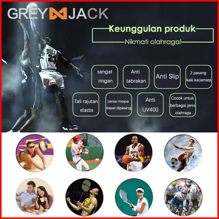 Grey Jack Frame Kacamata Sport 2in1 Olahraga Basketball Soccer Tennis