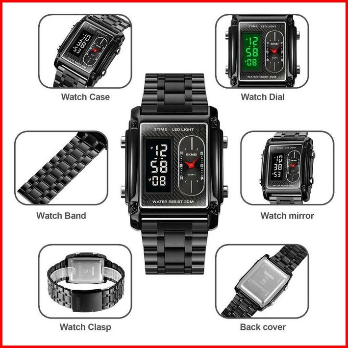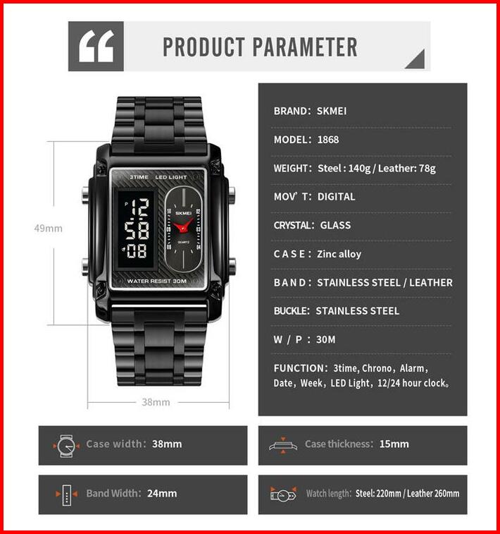 Jam Tangan Digital Skmei 1868 Kulit Dan Stainless Steel Water Resist Arloji Pria Watches
