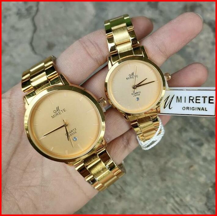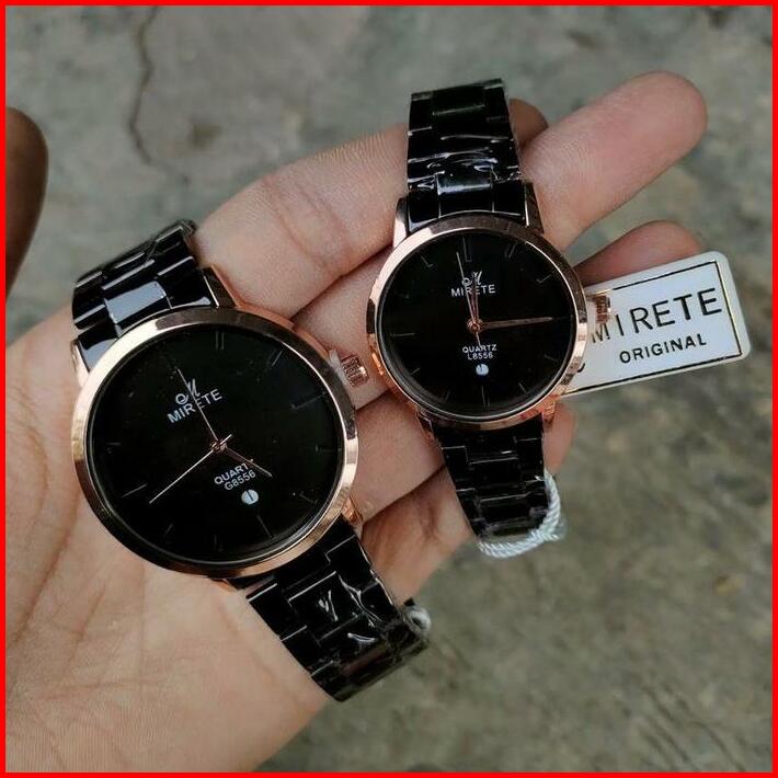 Jam Tangan Premium Couple Mirete Original Bahan Stainless Analog Tahan Air Tanggal Aktif Gratis Batrai Cadangan Santai M