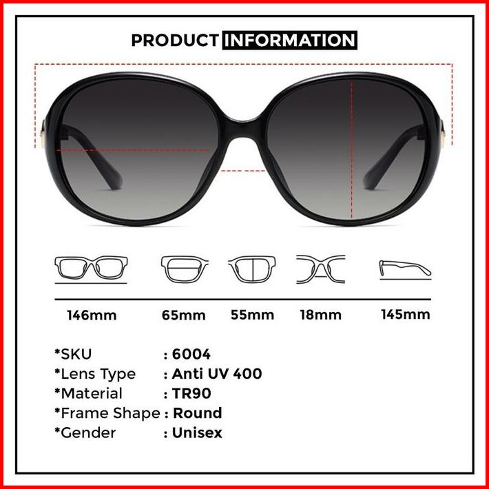 Kacamata Hitam Anti Uv Polarized Wanita Frame Oval Berrybarton 6004