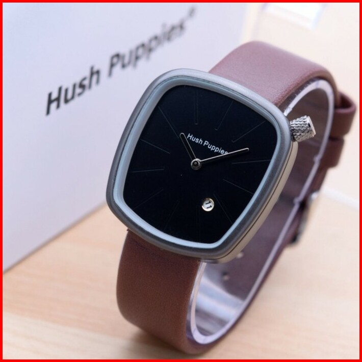 Jam Tangan Wanita Hush Puppies Set Segi Kulit Body Hitam