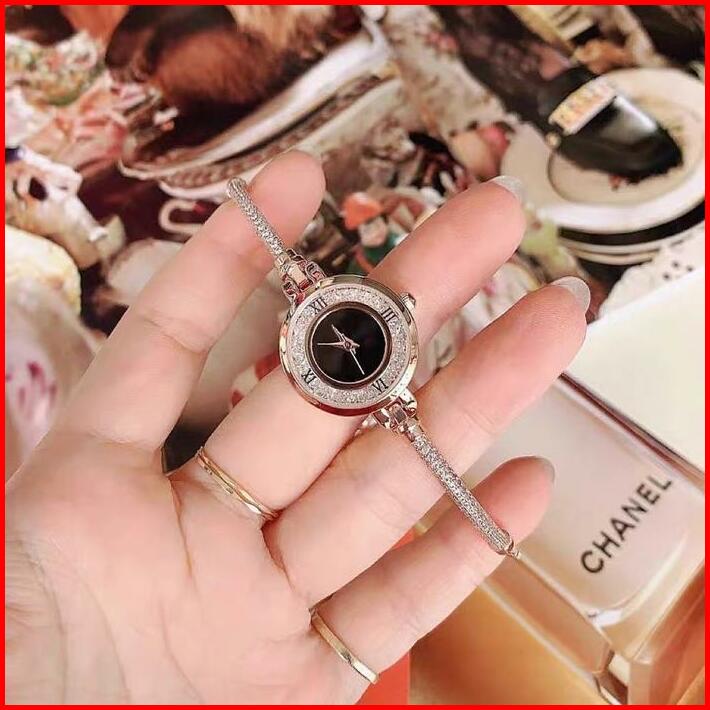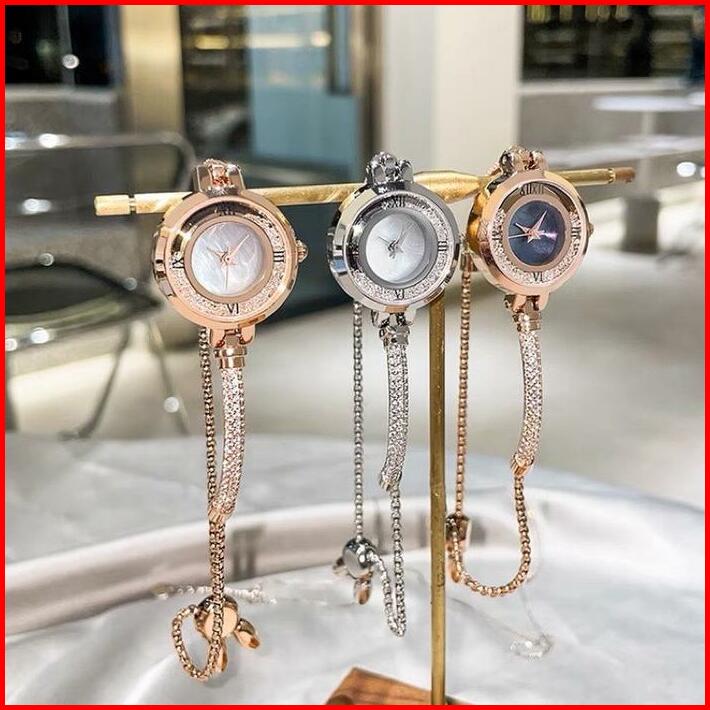 Kooley Jam Tangan Wanita Serut Mutiara Romawi Diamond Cristall Ball Elegan