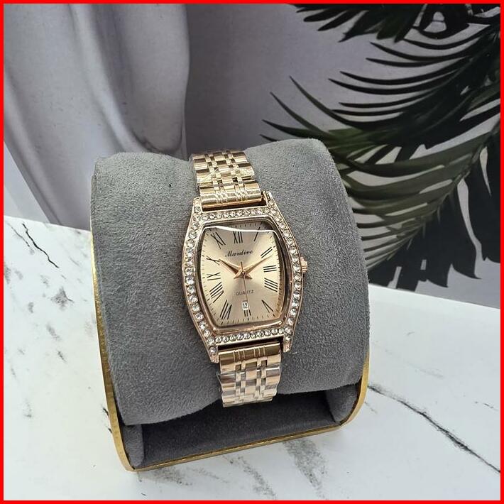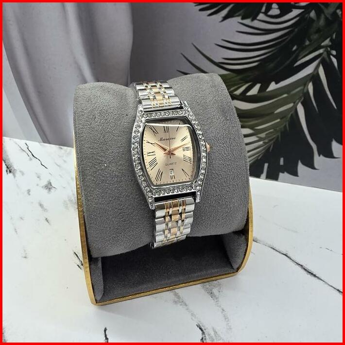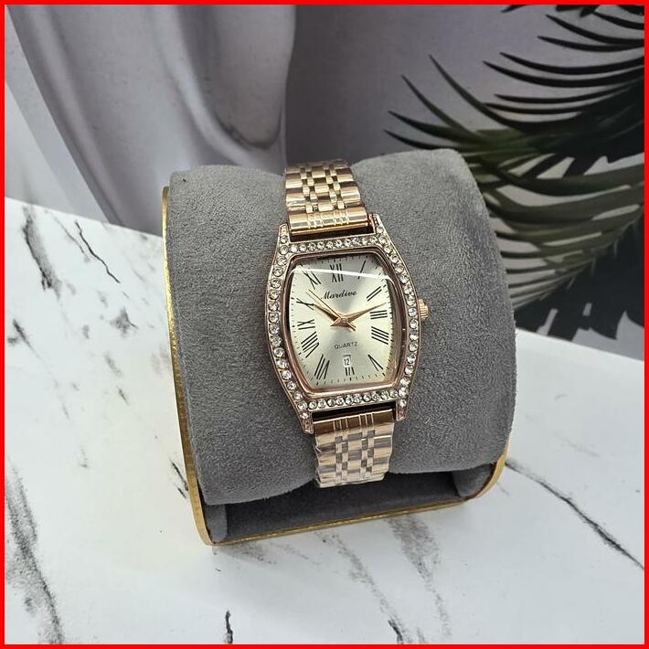 Tanpa Box Jam Tangan Wanita Mardive Oval Analog Rantai Stainless Steel Watches