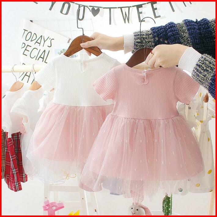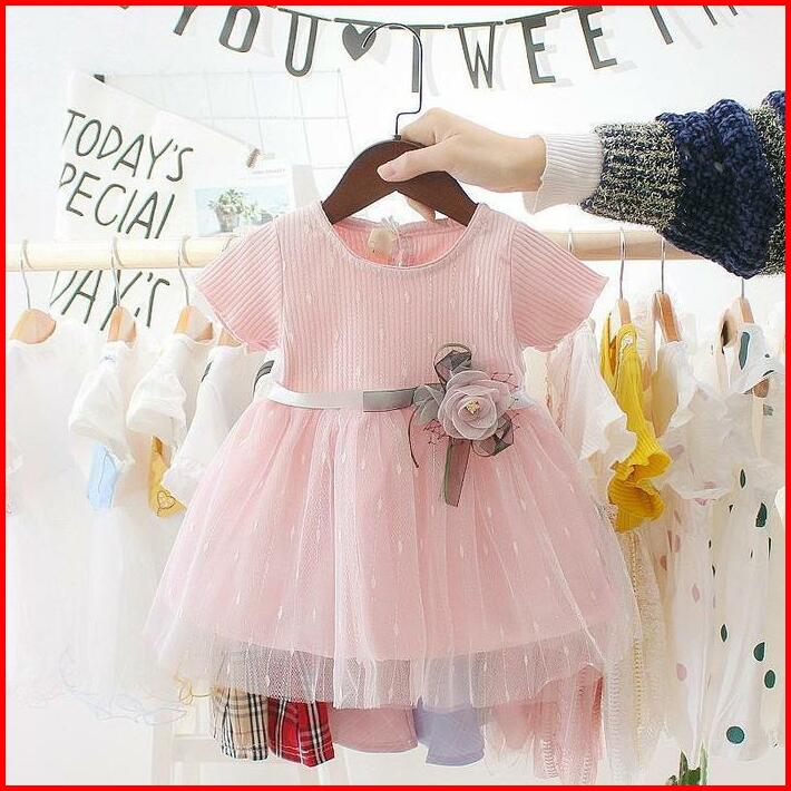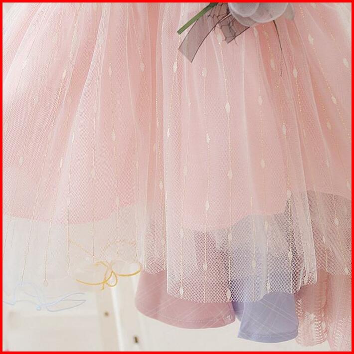 Princess Kesli 0-2 Tahun Dress Tutu Flowers Kancing Anak Perempuan Baju Princess Bahan Tile Sudah Dilapisi Furing Kids G