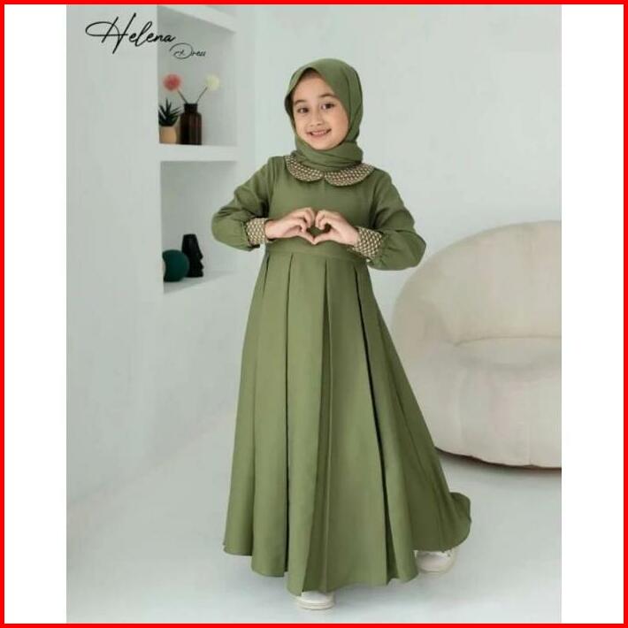 Gamis Anak Hellena Kids Dress Umur 5-14 Tahun M.l.xl Baju Gamis Anak Terbaru Dress Anak Dress Crenkle Anak Muslim Crinkl