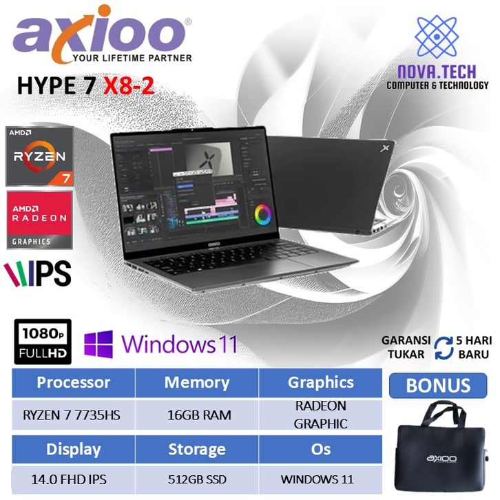 Axioo Hype 7 X8-2 Laptop Ryzen 7 7735HS Ram 16gb 512gb Ssd Windows 11 14.0Fhd ips