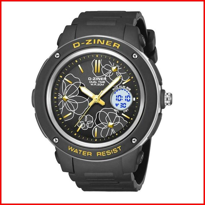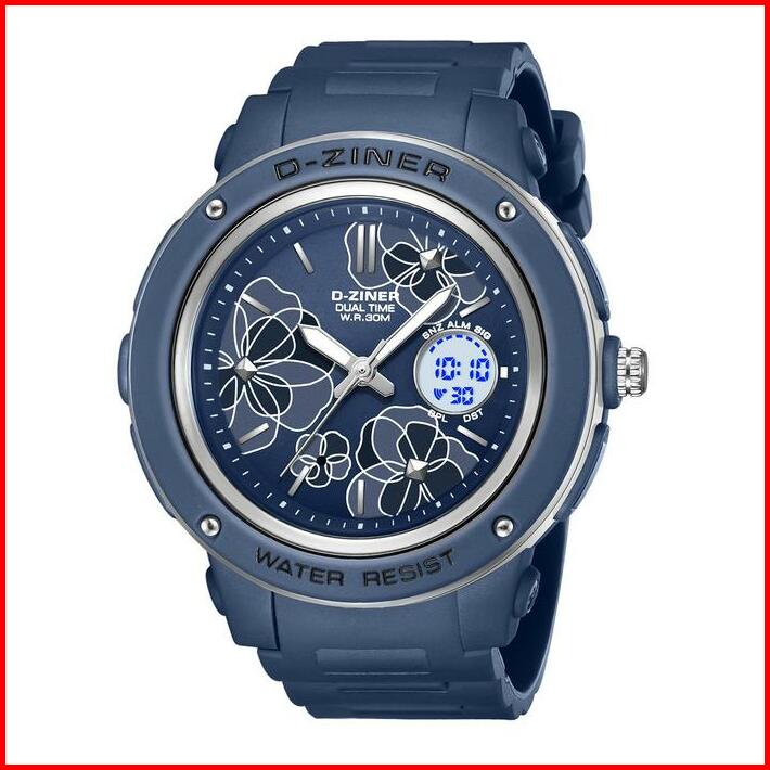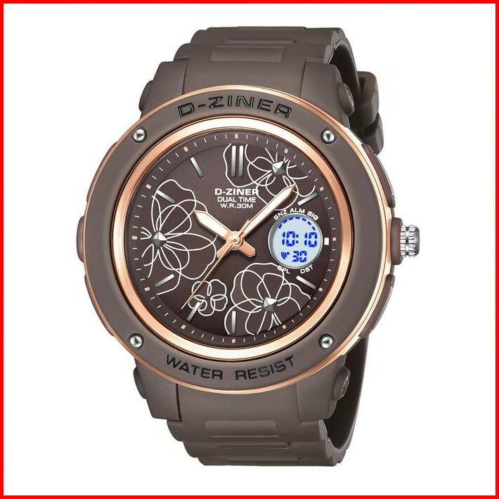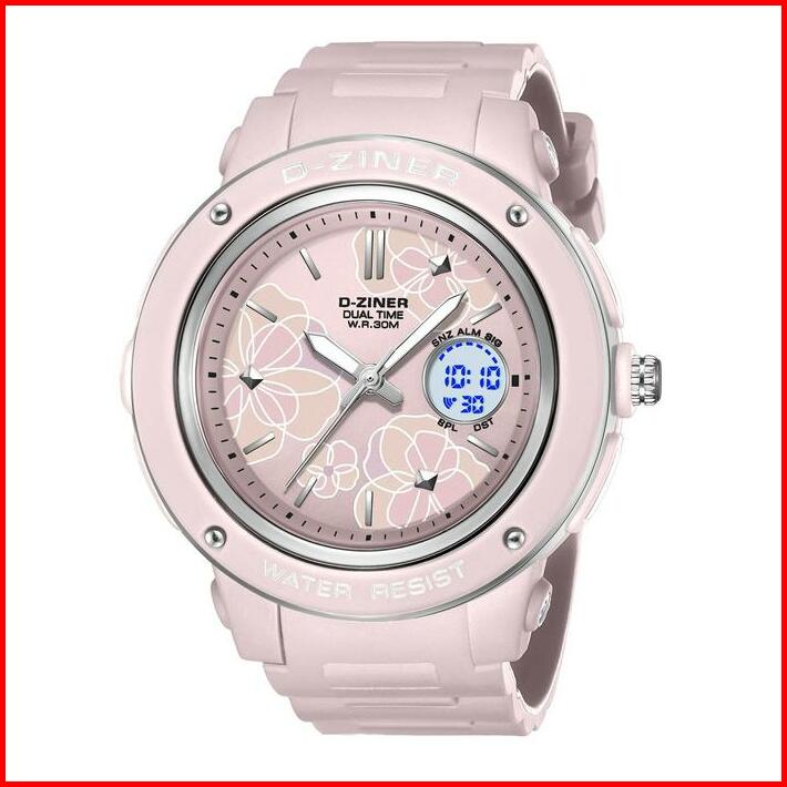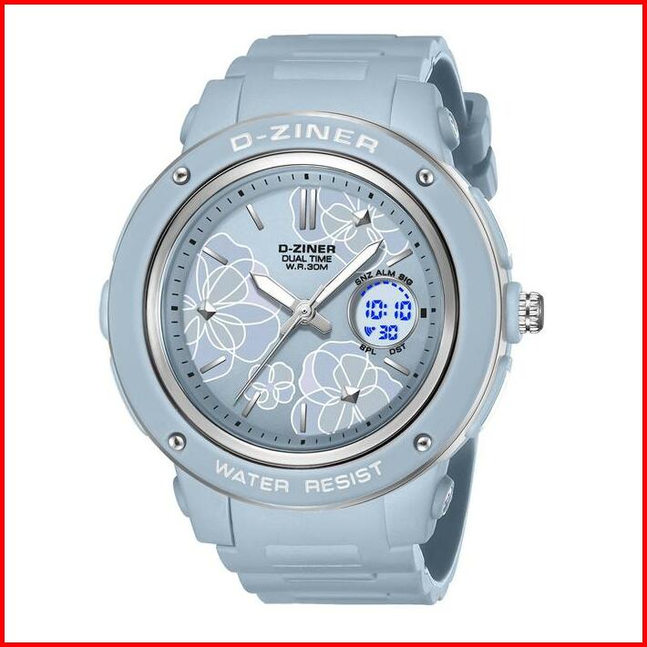 Stok Terakhir Jam Tangan Wanita Dziner 8311 Rubber Double Time Waterproof 3 Atm Kaca Watches Stainless