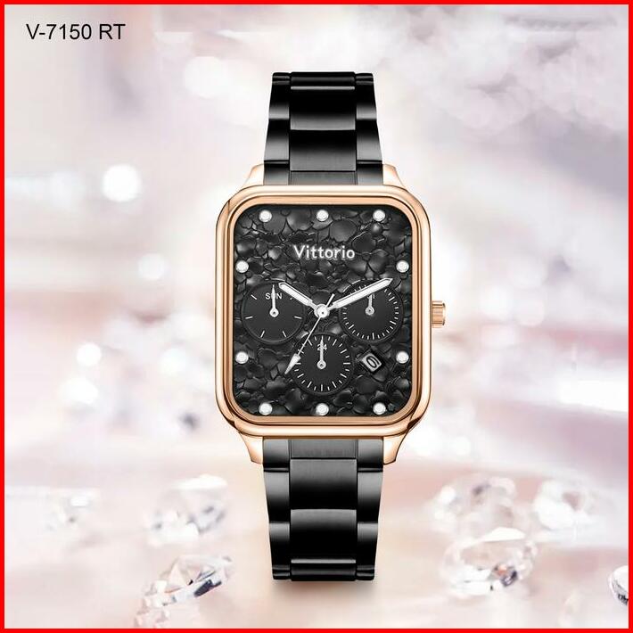 Diskon Jam Tangan Wanita Vittorio 7150 Rantai Tanggal Stainless Watches Kaca