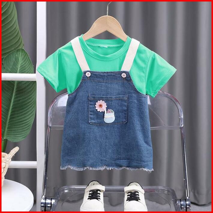 Set Dress Jeans Anak Perempuan Dan Kaos Motif Lucu Rabbit 4 Bulan-4 Tahun Anak Cewek