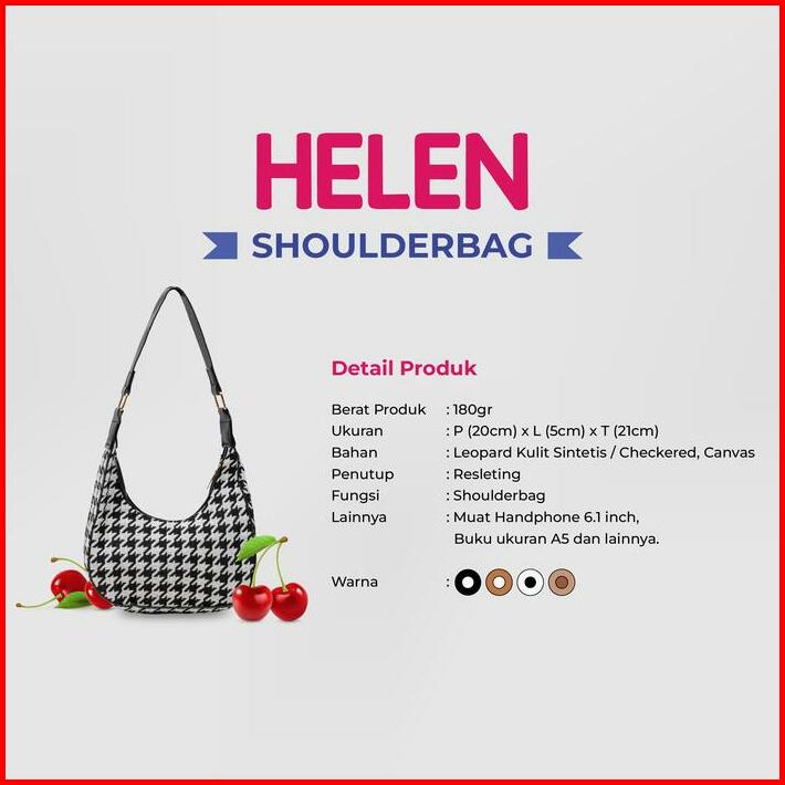 Helen Tas Selempang Bahu Jinjing Kulit Sintetis Resleting 3in1 Shoulder Bag Slingbag Handbag Motif Wanita Kekinian Cute