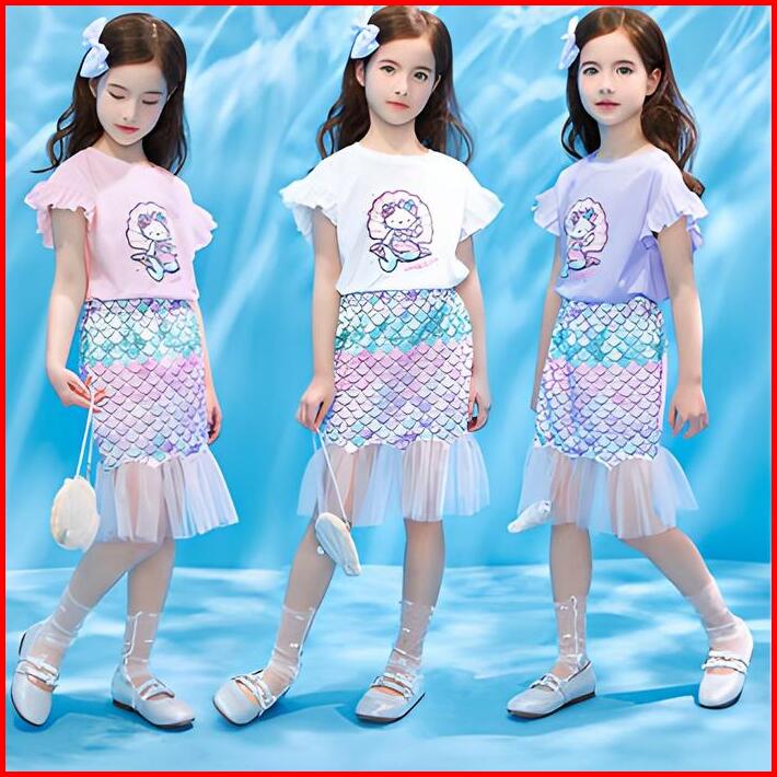 Princess Kesli 1-9 Tahun Dress Mermaid Hello Kitty Setelan Gaun Putri Anak Perempuan Girls Bayi Kids Fashion Merah Katun