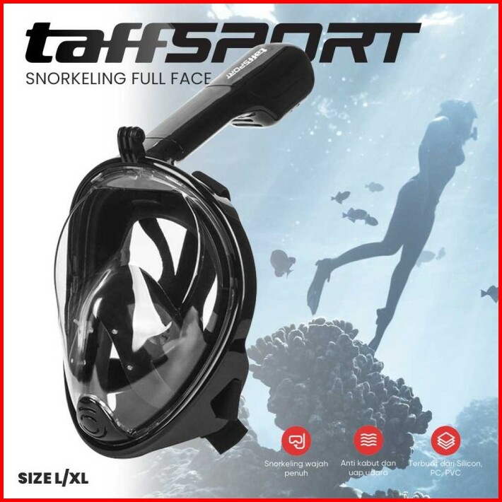 Snorkel Alat Snorkling Kacamata Selam Full Face Size L Xl Black Y2859