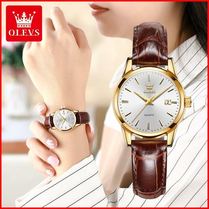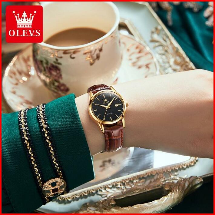 Olevs Jam Tangan Wanita Terbaru 2023 Original Kecil Anti Tahan Air Kulit Branded Analog Women Watch Hitam Watches Kaca