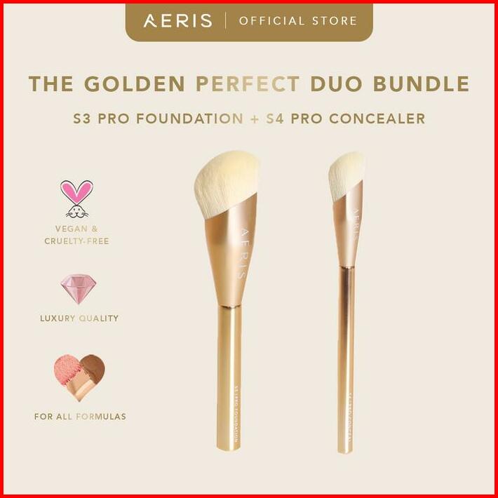 Aeris Beaut The Golden Perfect Duo Bundle 1 Set Bundle Paket Kuas Wajah Alat Make Up Brush Foundation Concealer