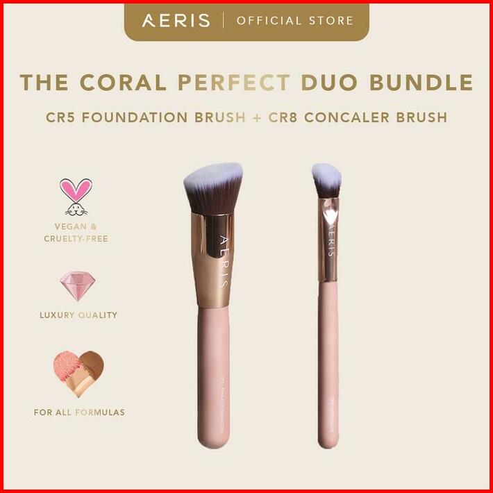 Aeris Beaut The Coral Perfect Duo Bundle 1 Set Bundle Paket Kuas Wajah Alat Make Up Brush Foundation Concealer