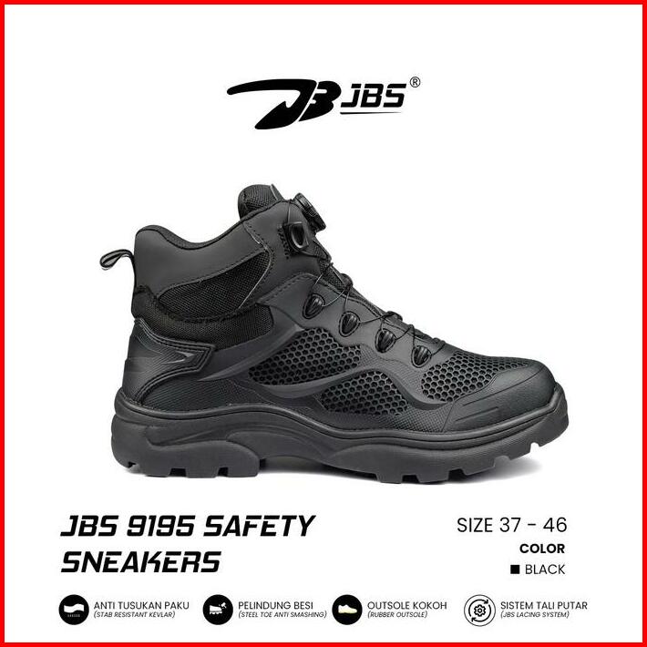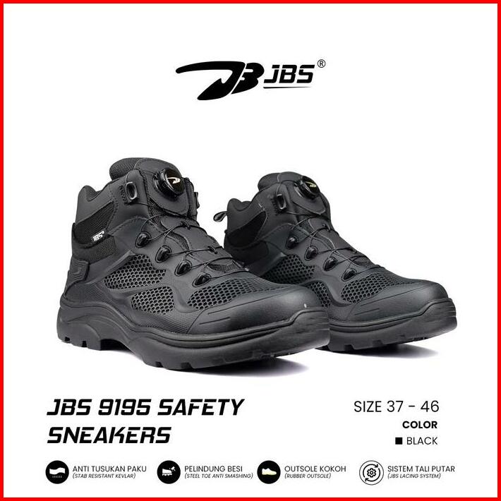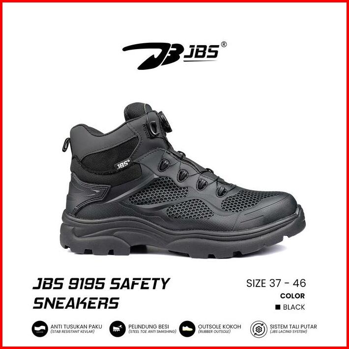 Sepatu Jbs 9195 Hitam Besi Anti Tusuk Stab Resisten Kevlar Sneakers Safety Pelindung Baja Tali Putar Pria