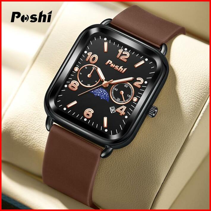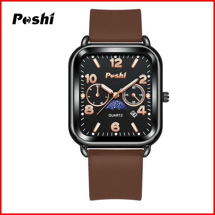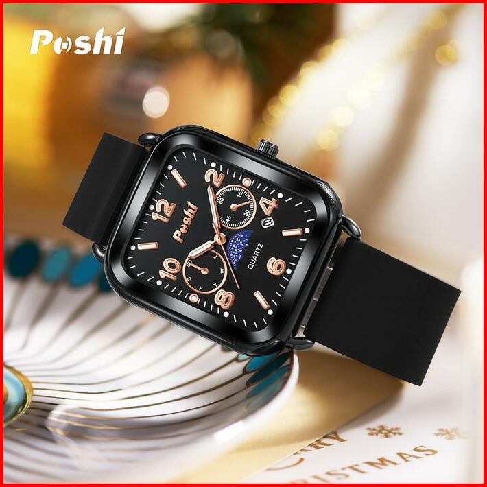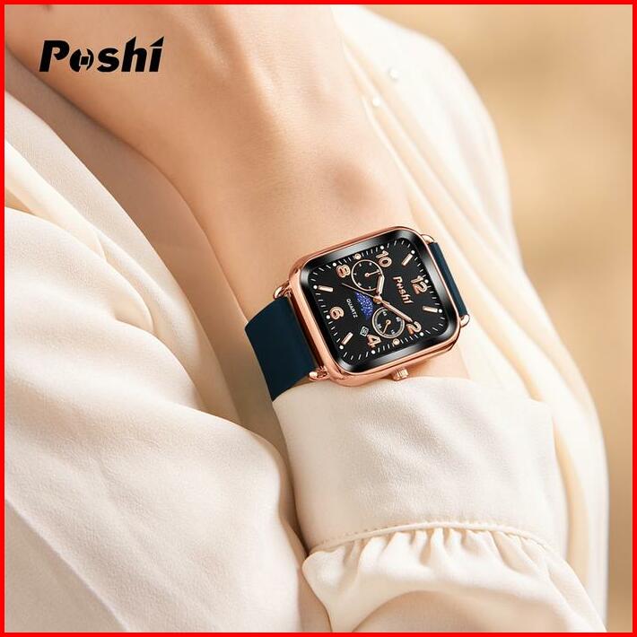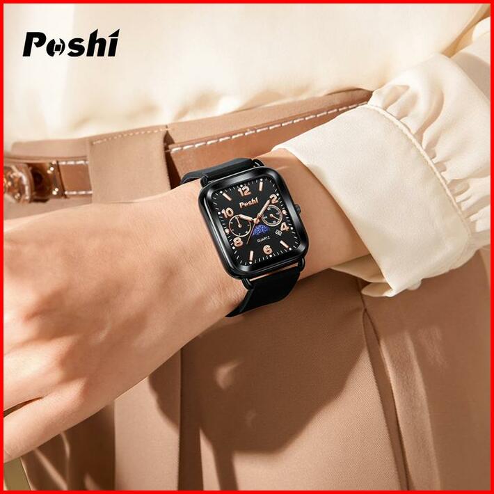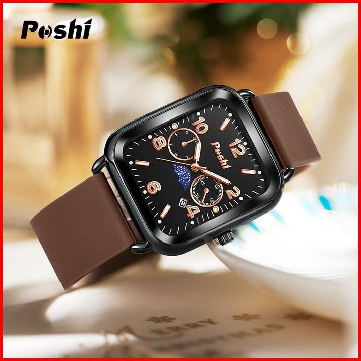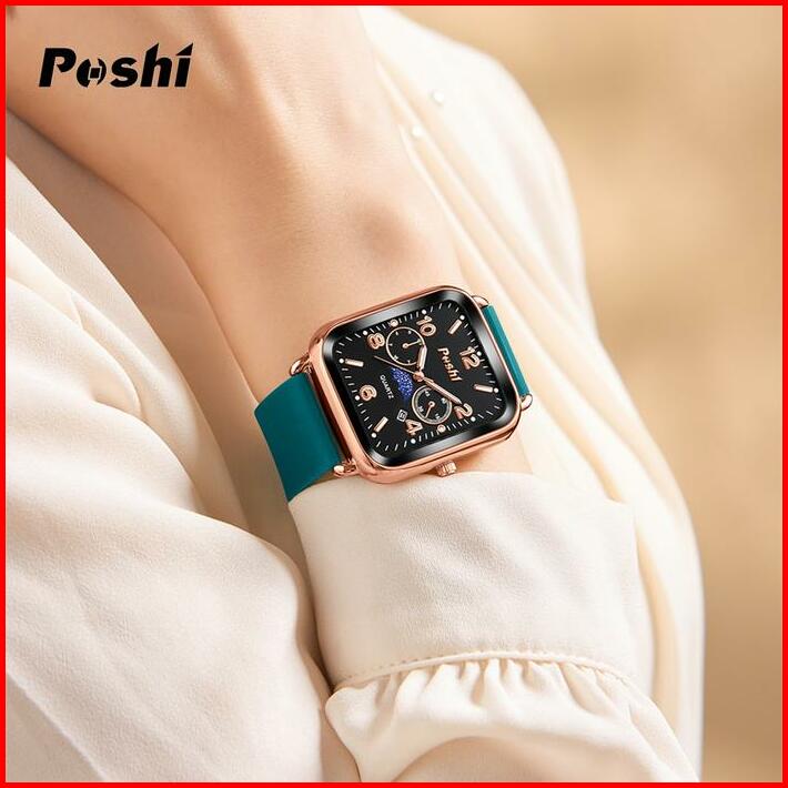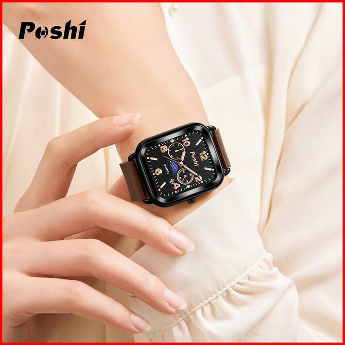 002 Harga Telah Diganti Cepat Beli Jam Tangan Wanita Poshi Elegan Dengan Kalender Hari Bentuk Persegi Tanda Malam Dan St