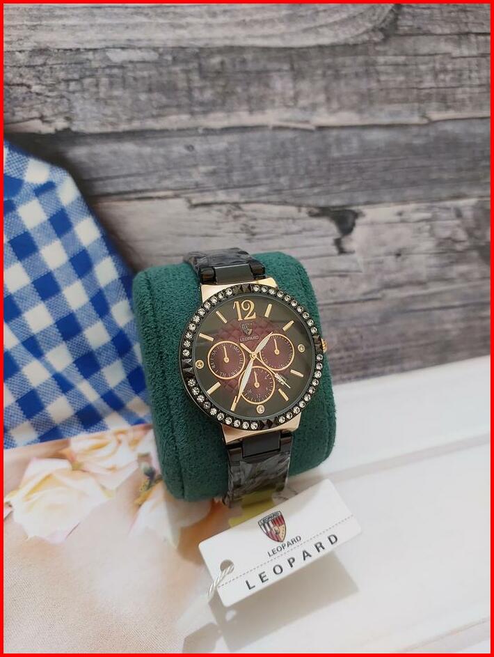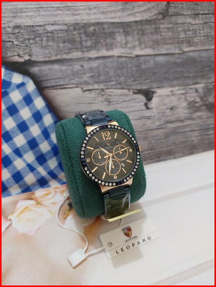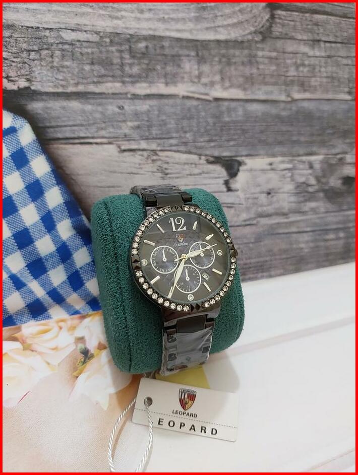 Lengkap Box Jam Tangan Wanita Merk Leopard Model 8076 Mutiara Keliling Tampilan Analog Tanggal Aktif