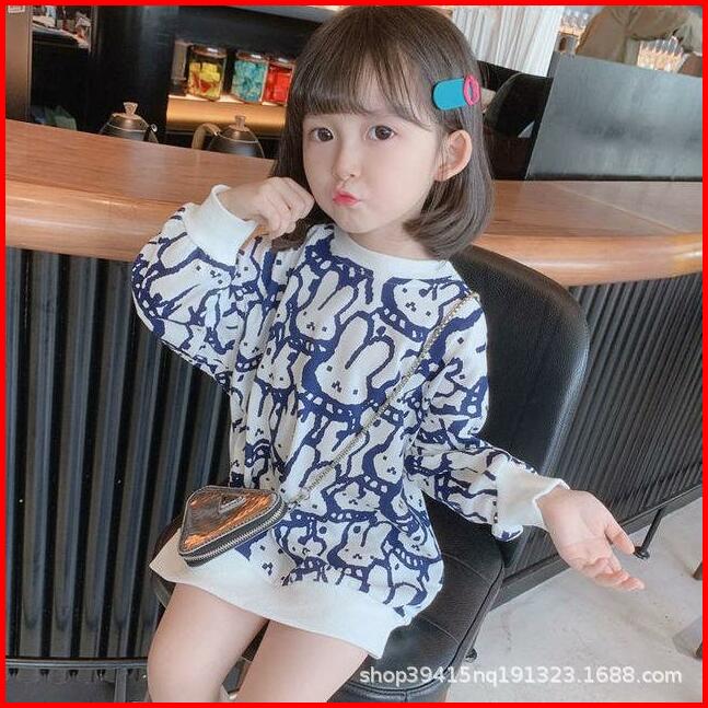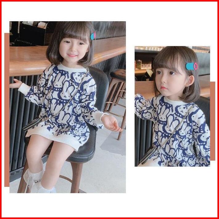 Gaun Dress Sweater Motif Kelinci Anak Perempuan Cewek Import