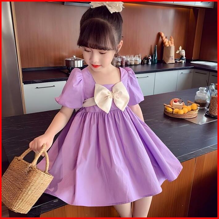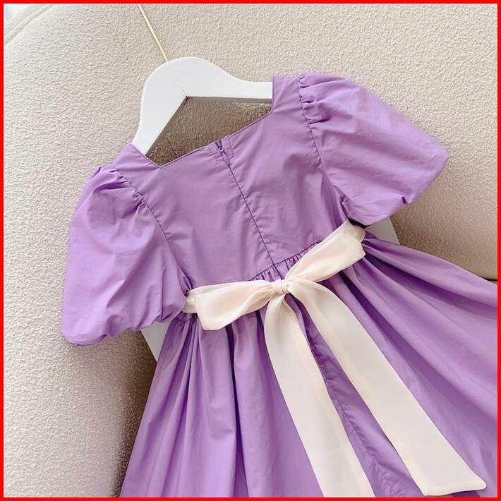 Princess Kesli 1-9 Tahun Dress Purple Red Baju Anak Perempuan Pesta Lengan Puff Terbaru Gaun Putri Baju Katun Nyaman Kid
