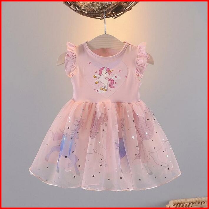 Princess Kesli 0-7 Tahun Dress Unicorn Anak Perempuan Gaun Pesta Lucu Untuk Bayi Cewek Baju Ulangtahun Katun Kids Girls