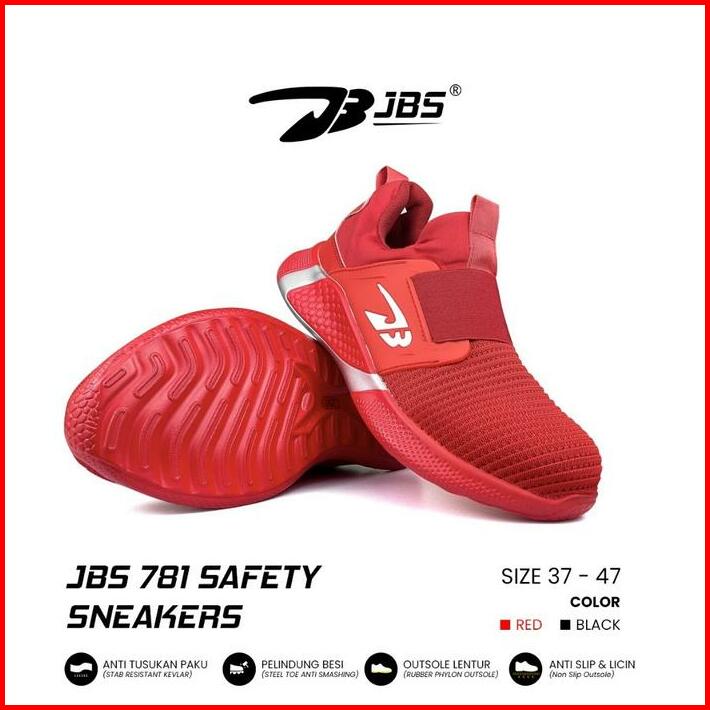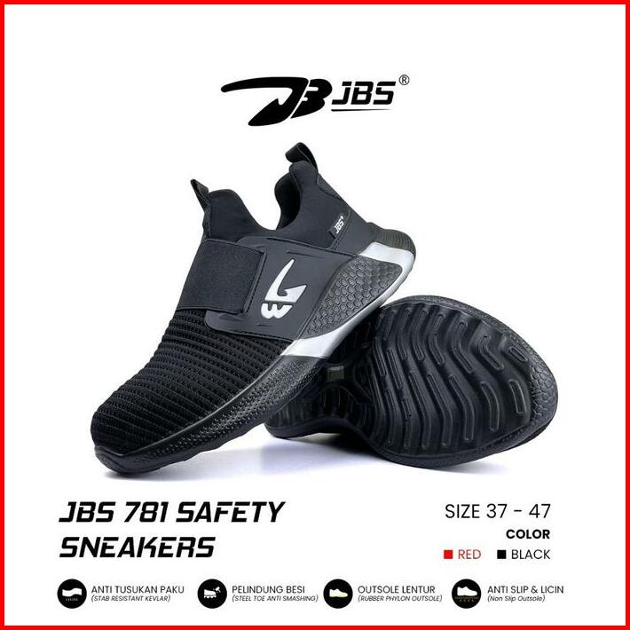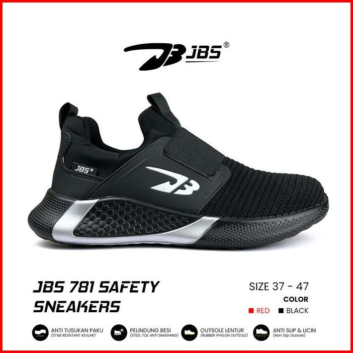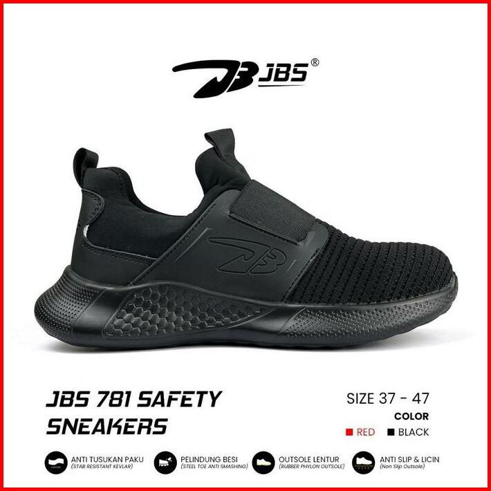 Sepatu Safety Sneakers Jbs 781 Slip On With Steel Toe Black Merah Casual Shoes Pria