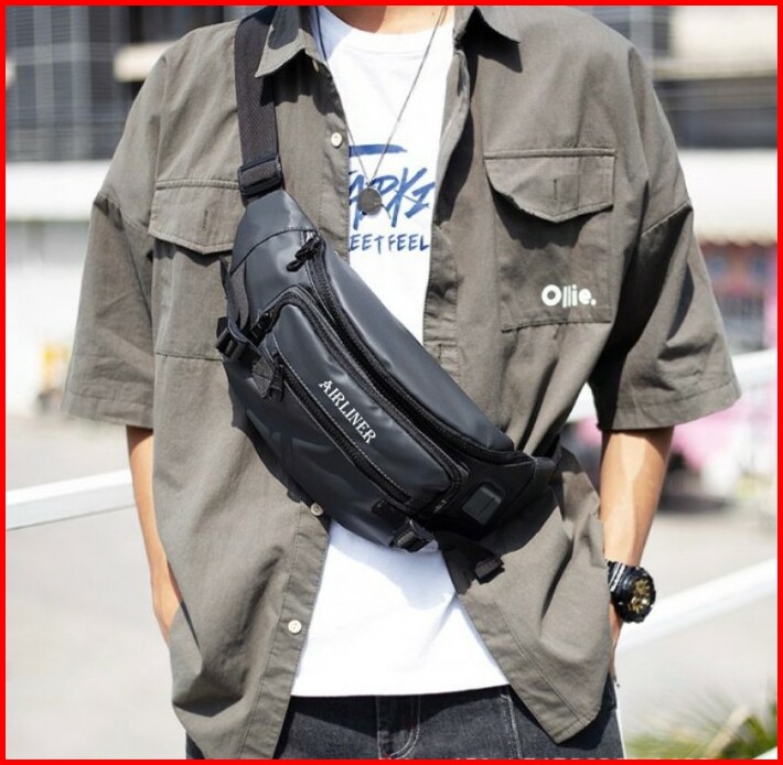 Tas Pinggang Pria Waistbag Import Dual Usb Tas Sepeda Slingbag Trendy