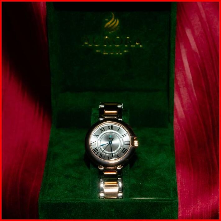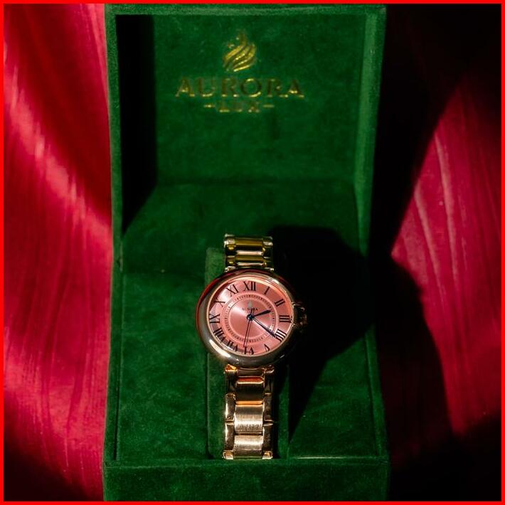 Lengkap Box Jam Tangan Wanita Aurora Lux 9751 Bundar Rantai Stainless Tampilan Analog Watches