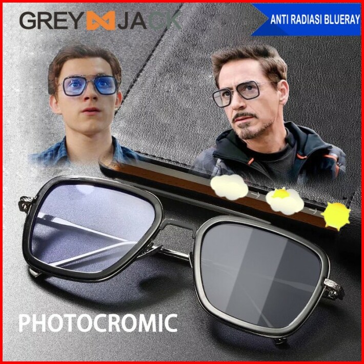 Kacamata Pria Grey Jack Tony Stark Anti Radiasi Photocromic 2836