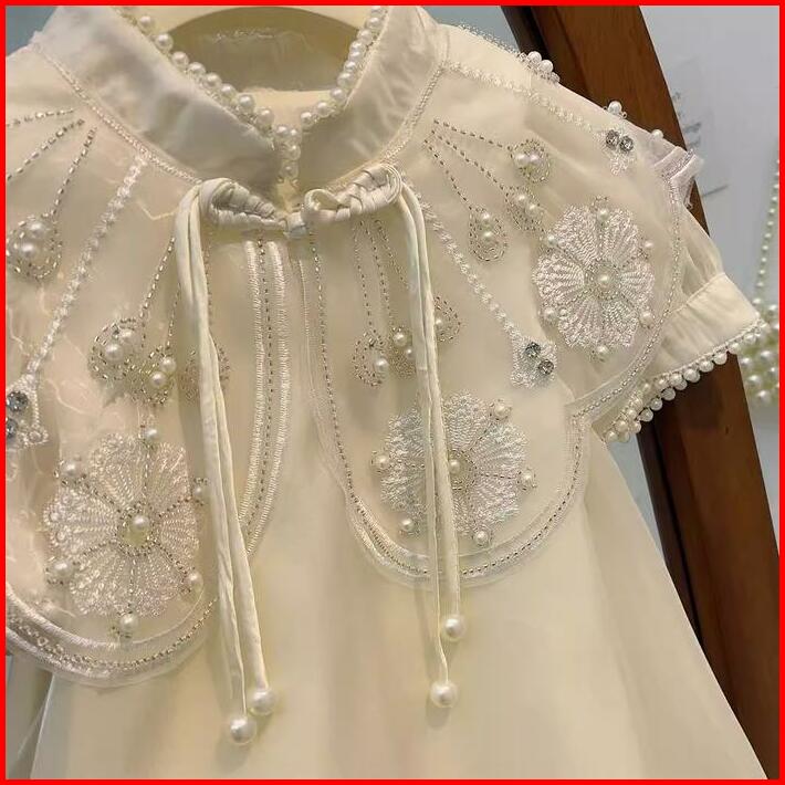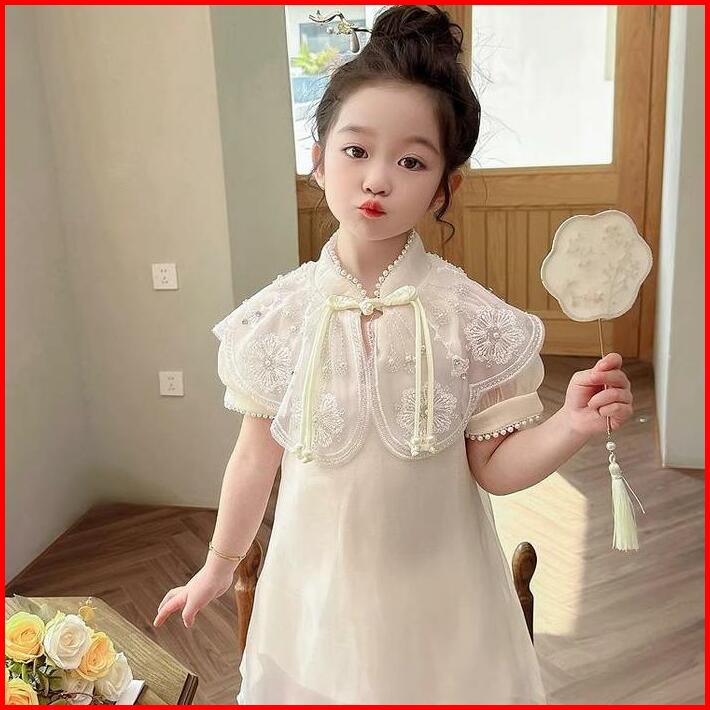 Readygaun Anak Perempuan Gaya Etnik Gaun Gaya Barat 2025 Musim Panas Selebriti Baru Puff Sleeve Mesh Gaun Putri Dress Ru