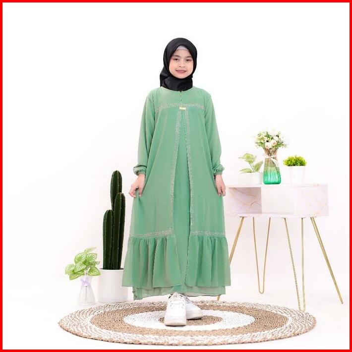 Hana Dress Abaya Untuk Usia 4-13 Tahun Crinkle Mix Swarosky Premium Gamis Muslim Anak Perempuan