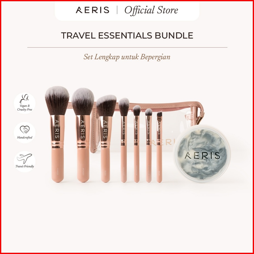 Aeris Beaut The Coral Travel Essentials Bundle 1 Set Bundle Paket Hemat Kuas Rias Brush Lembut Mini Lengkap Untuk Wajah