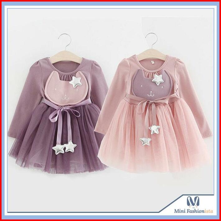 Dress Anak Perempuan Import Dress Pesta Anak Gaun Anak Perempuan Korean Style Pita Bintang Baju Fashion