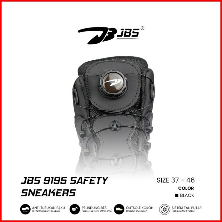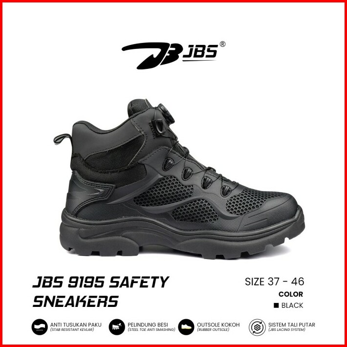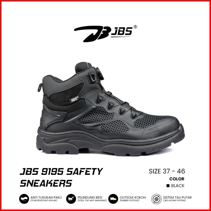 Sepatu Jbs 9195 Hitam Besi Black Shoes High Sepatu Safety Sneakers Putar Sepatu Sneakers Safety Pelindung Baja Anti Tusu