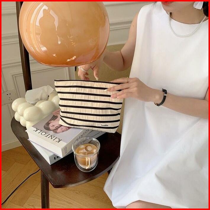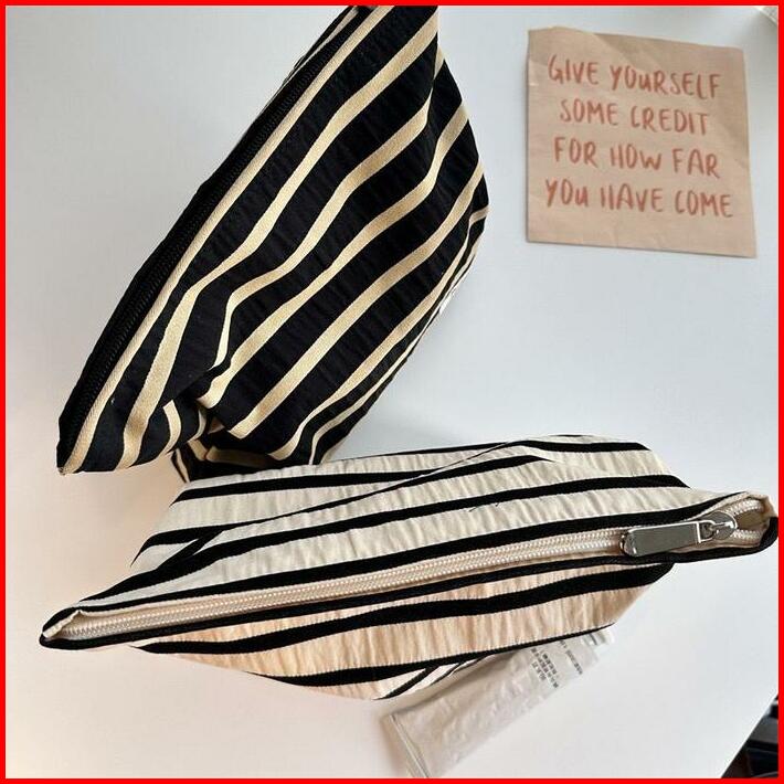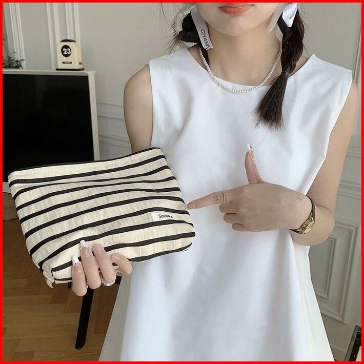 Miloli 1pcs Pouch Travel Bag Striped Sozakka Tas Kosmetik Travel Large Capacity Kotak Pensil Aesthetic Tempat Pensil