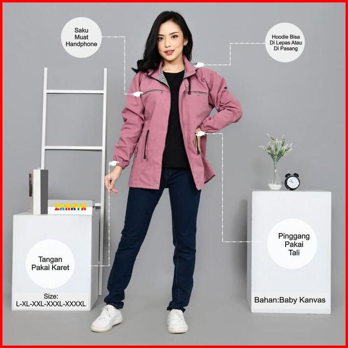 Jaket Parka Wanita Korean Style Kualitas Premium Model Terbaru Bahan Kanvas Tebal Ukuran Kumplit Linen