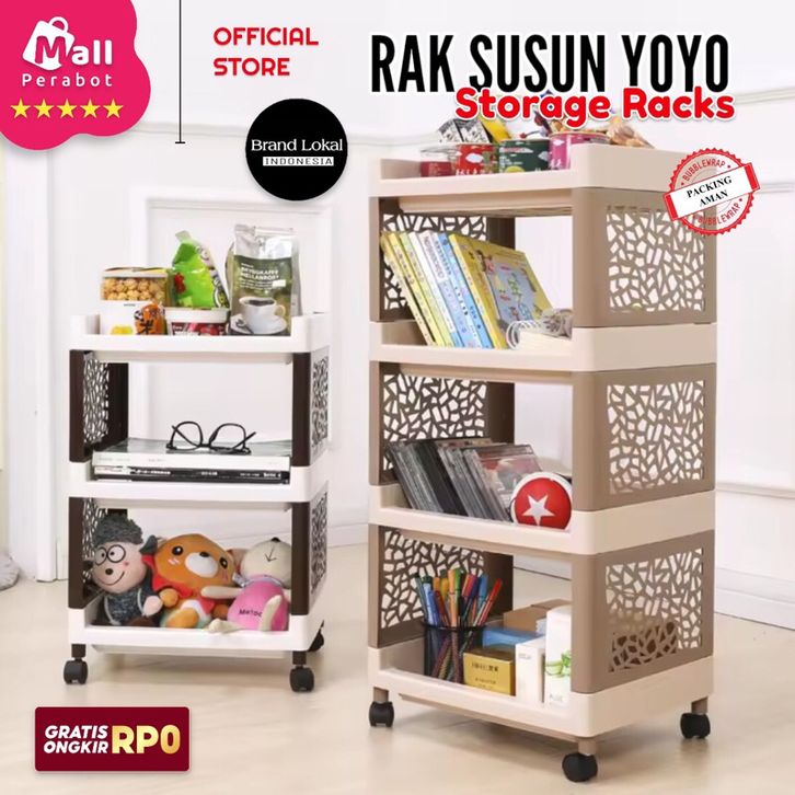 RAK SUSUN YOYO HITAM SERBAGUNA 4 TINGKAT DENGAN RODA RAK KAMAR MANDI BAHAN PLASTIK PORTABLE RAK DAPUR TROLLEY TERMURAH
