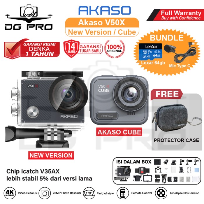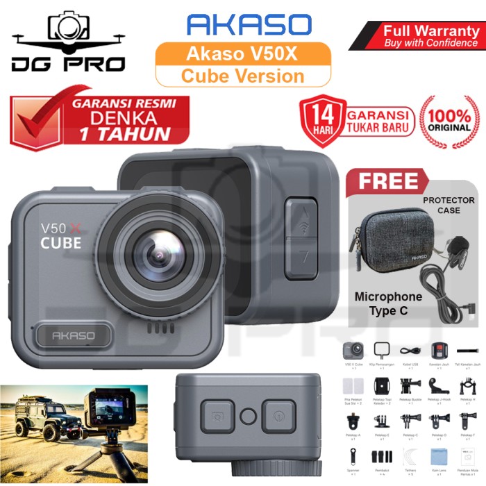 AKASO V50X CUBE 4K ACTION CAM CAMERA NEW VERSION - V50 X / V 50X 4K TYPE-C GARANSI RESMI - V50X NEWVERSION, STANDAR BOX