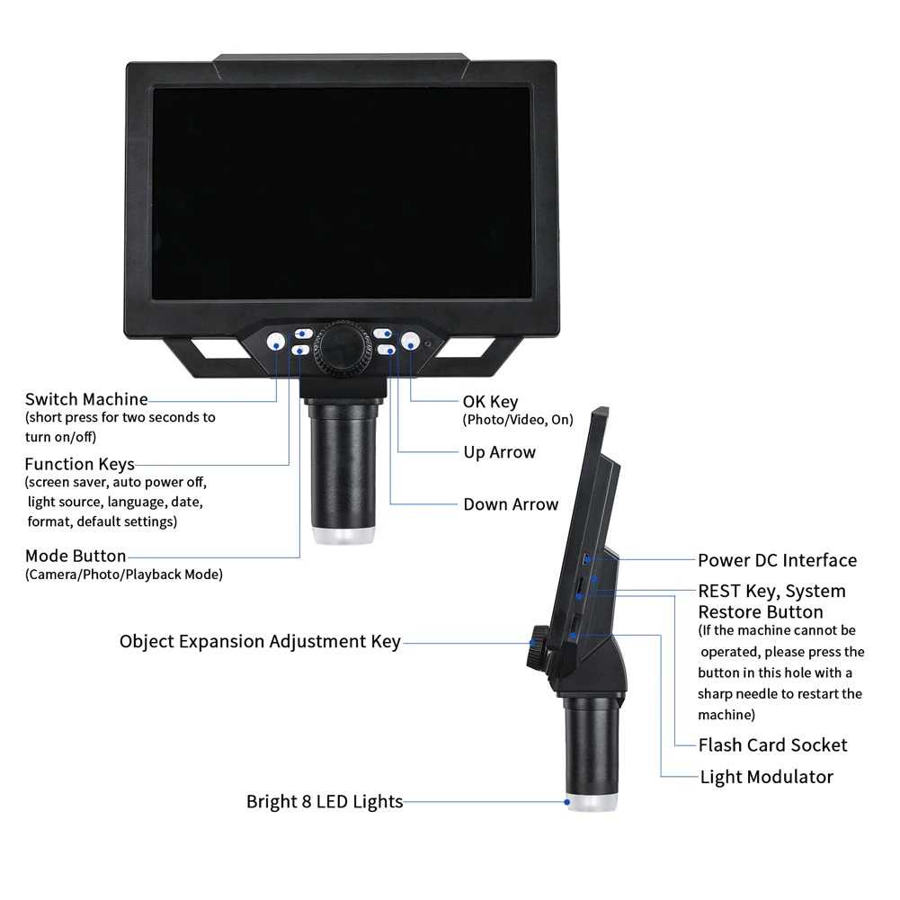 Mikroskop Digital 1600X 12MP Microscope Monitor & Metal Stand Meterk G1600