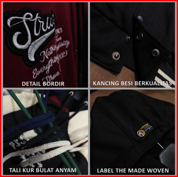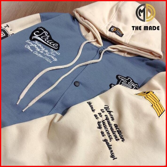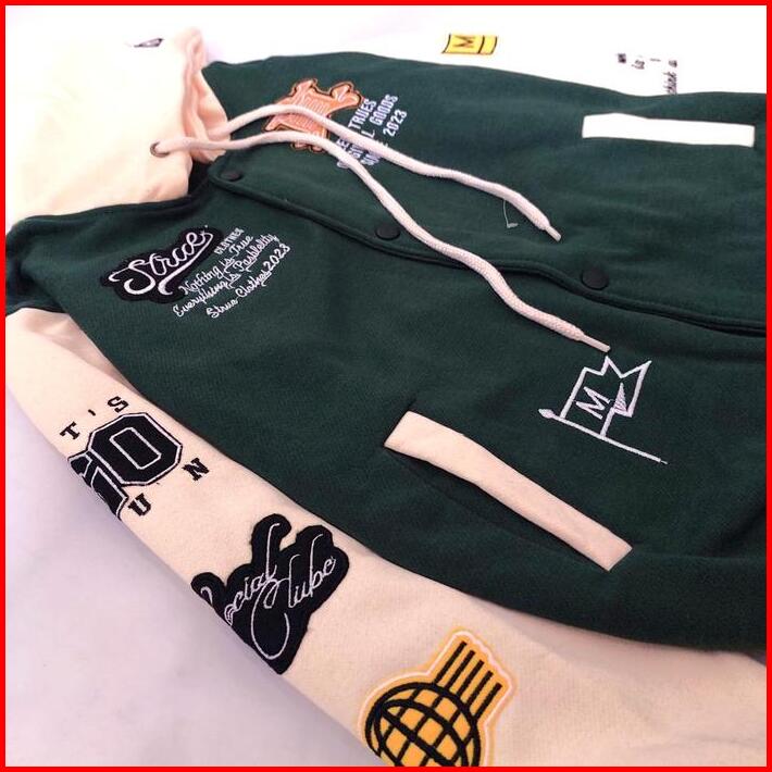 Jaket Hoodie Varsity Bordir Kancing Kupluk Terbaru Untuk Anak Dan Dewasa Laki-laki Dan Perempuan Bahan Fleece Tebal Kere