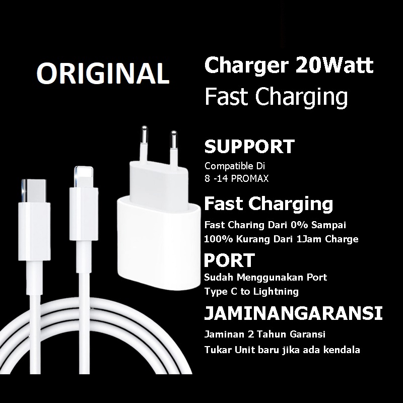 Charger Iphone 20W Fast Charging 1 Set Adaptor Dan Kabel Original