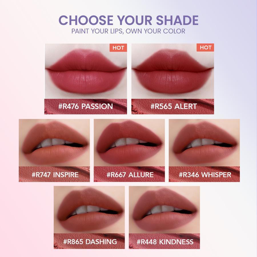 R346 Whisper , R667 Allure , R747 Inspire, R448 Kindness , R565 Alert , R476 Passion , R865 Dashing