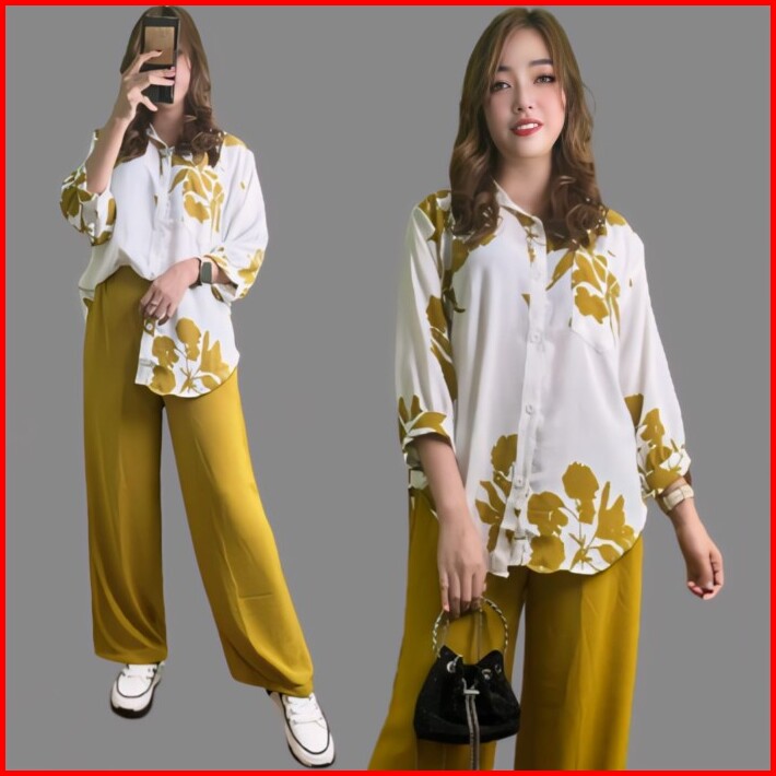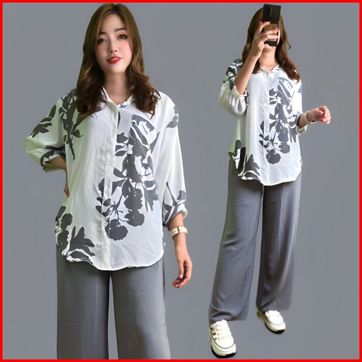 Ottila Setelan Wanita Crincle Airflow Ld 120 Atasan Oval Celana Lurus