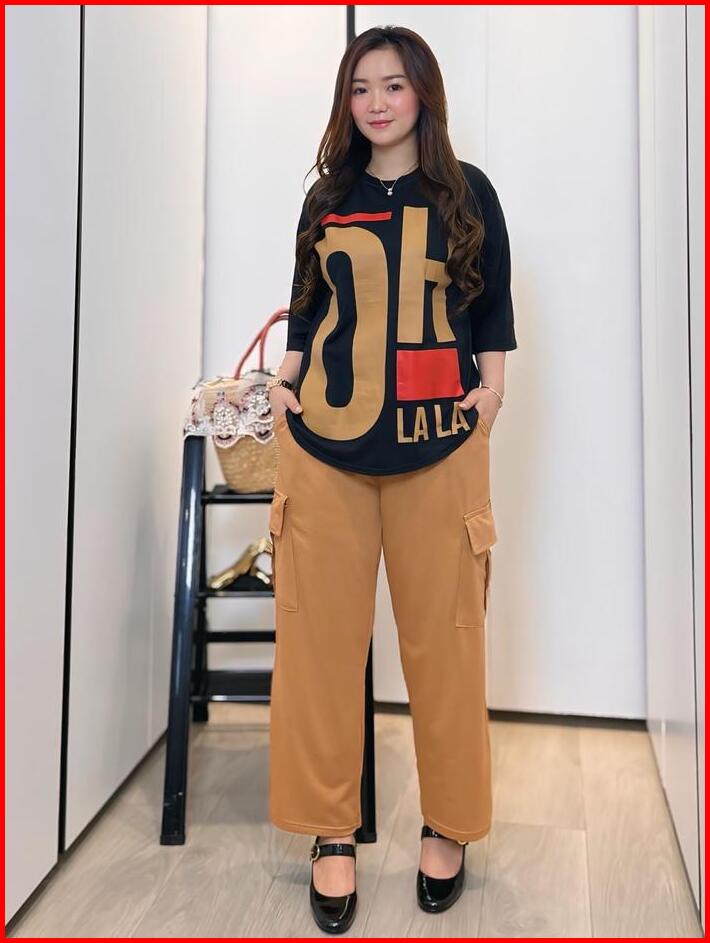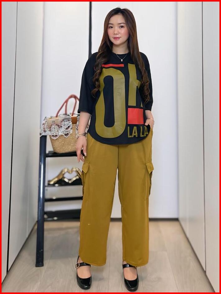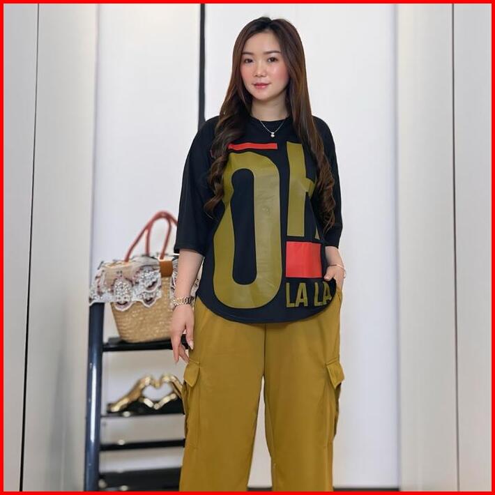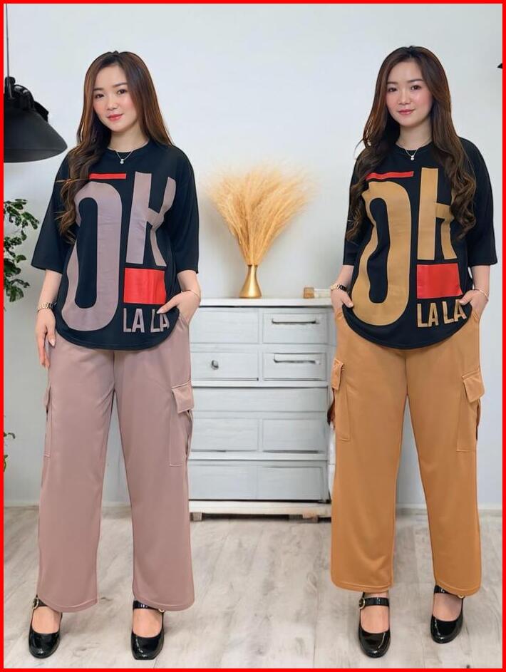 Setelan Cargo Oversize Ld 120 Cm Setelan Wanita Atasan Lengan 3 4 Dan Celana Cargo Setelan Oh Lala Fashion Muslim Sr5370