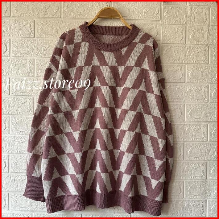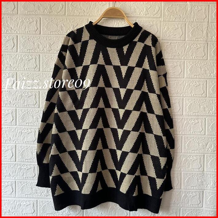 A55 Giva Knit Sweater Rajut Oversize Top Atasan Lengan Panjang Wanita Fit Tangan Knitwear Outer Baju