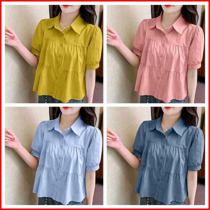 Atasan Kemeja Wanita Dewasa Terbaru Dan Kekinian Atasan Wanita Korea Lengan Pendek Blus Wanita Dewasa Terbaru Lengan Pen