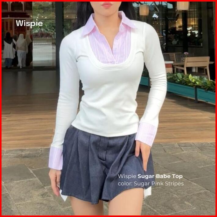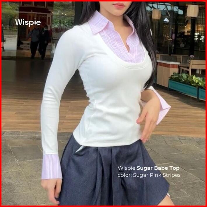 Wispie Sugar Babe Top Atasan Wanita Slim Fit Kemeja Knit Press Body Rib
