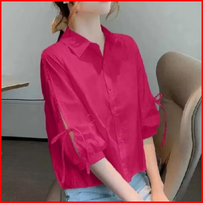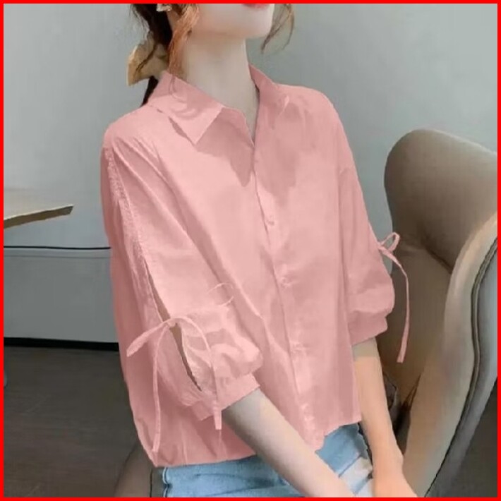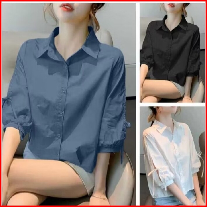 Blouse Wanita Terbaru Lengan 3 4 Atasan Kemeja Wanita Katun Poplin