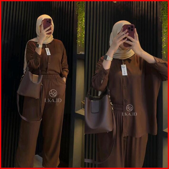Lka One Set Polos Oversize Rayon Twill Premiun Setelan Kemeja Kulot Wanita Kekinian