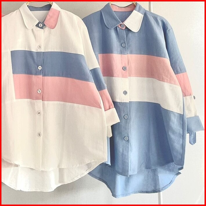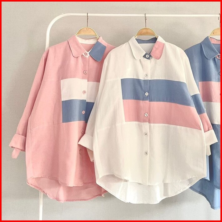 Atasan Lengan Panjang Kemeja Full Kancing Hidup Linen Import